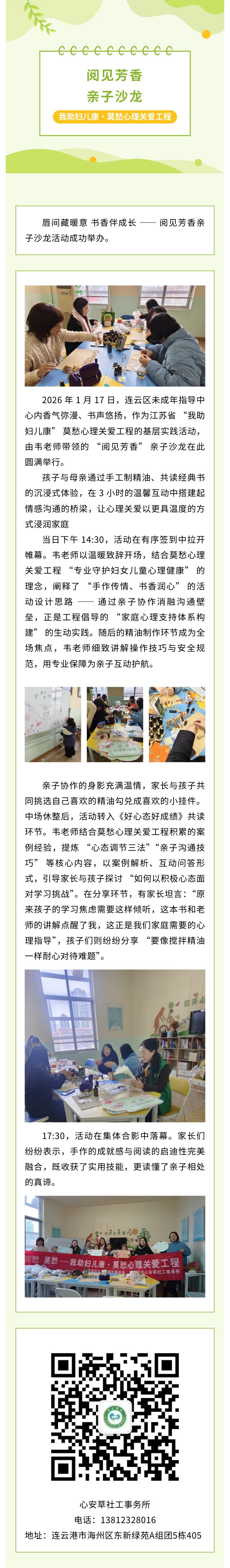 阅见芳香,亲子沙龙——“我助妇儿康·莫愁心理关爱工程”项目