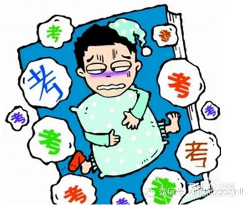 考试恐惧的症状是什么?从行为选择的角度看是逃入疾病:坐骨神经痛、胃不适、发烧。工作障碍和兴趣的改变也是一个众所周知的现象。在考试状态中,可以有激惹的和挑衅性的反应。模仿、声音、行为和字迹上的改变是常见的现象。一个德国研究小组考察了大约500个考生的临床症状。所有考生都有血压升高、脉搏和呼吸加快,血糖水平升高。72%的考生感到有胃部空虚感,62%双膝发软,63%感到口渴,49%喉头发干。有以下一些症状的考生的数量均超过50%: