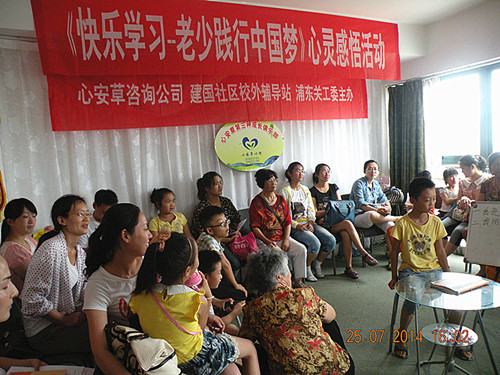 为了让广大青少年度过有意义和丰富多彩的假期,加强对青少年思想教育,关爱老人身心健康,近日,由心安草心理咨询中心、街道社区校外辅导站、浦东关工委主办的《快乐学习,老少践行中国梦》、幸福心理健康讲座等活动在我中心顺利开展。社区几十位老人、青少年及部分家长老师参加了活动。
