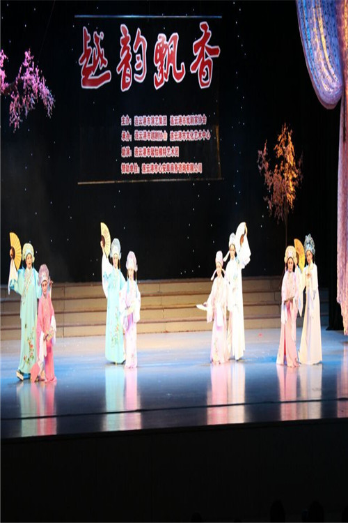 整台晚会,节目精彩粉呈,舞台炫丽夺目。首曲兰花雅韵把观众带入了烟雾迷离的江南氛围中,节目中既有耳熟能祥的越剧红楼梦、梁祝的经典片断,又有充满浪漫主义色彩的《白蛇、游湖〉、《洞房〉选段,十二金钗于烟雾缭绕中缓缓出场,观众宛如真的置身于太虚幻境中……更为可喜的是:我们看到了戏剧在港城这块土地上,已经慢慢生花,海宁小学越剧社的孩子们演唱的“天上掉下人林妹妹”,稚嫩的声音,充满童趣的表演,赢得了在场观众的阵阵喝彩声。最后由南京越剧团越剧名家、戚派花旦何秋萍老师和南京越剧名票俞国娟老师表演的传统折子戏《血手印 花园会》将晚会推向了高潮,她们的一朝一式无不流露出专业特色。
